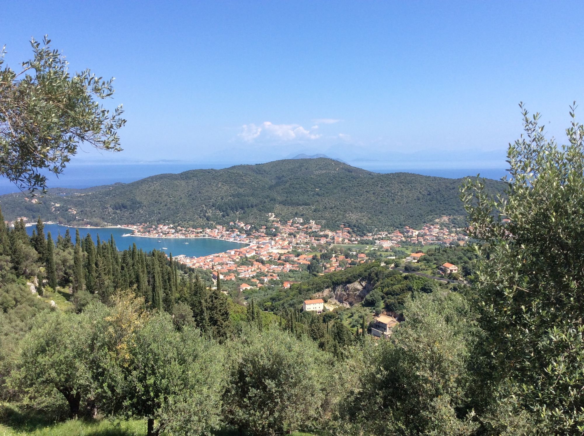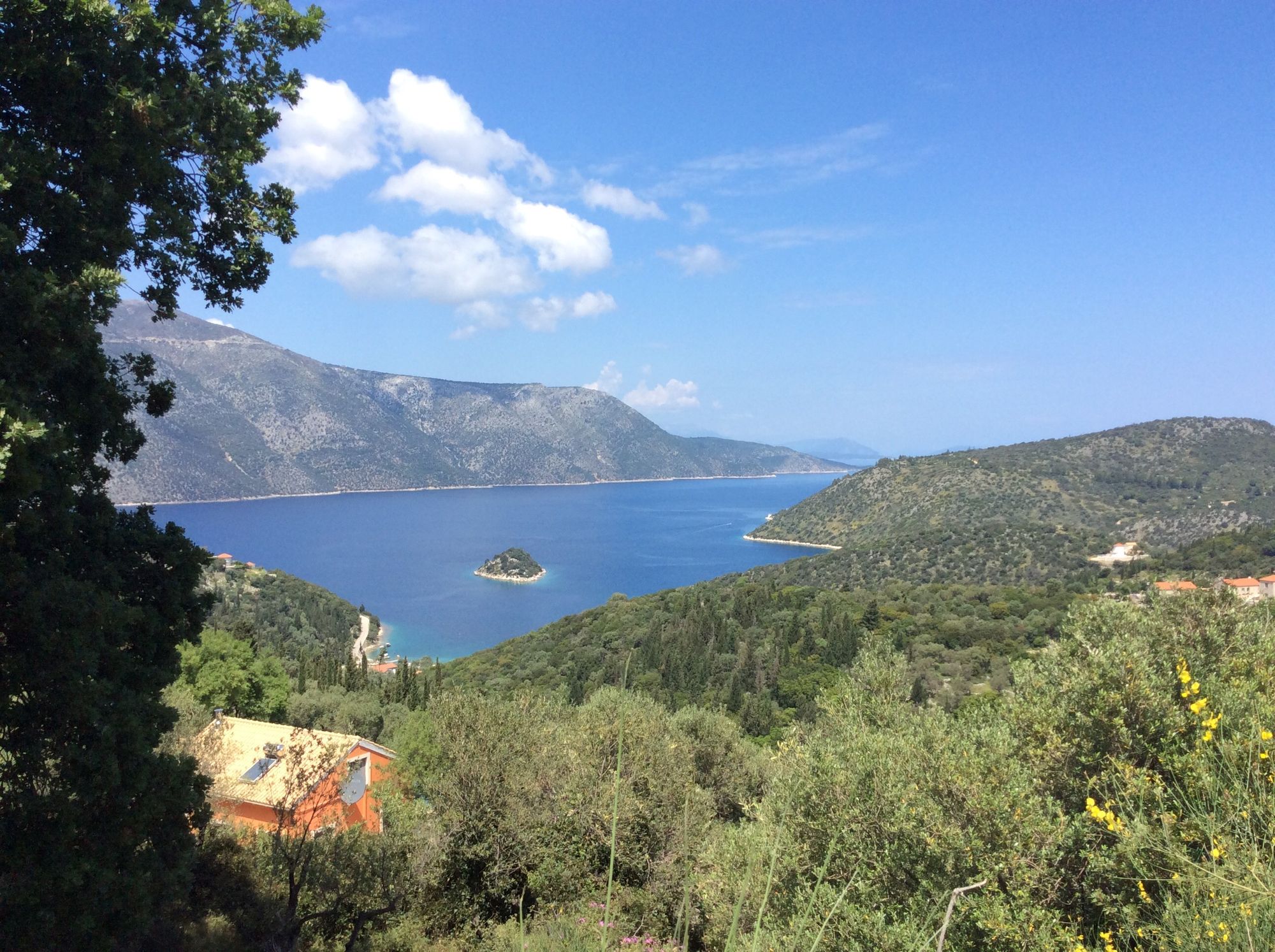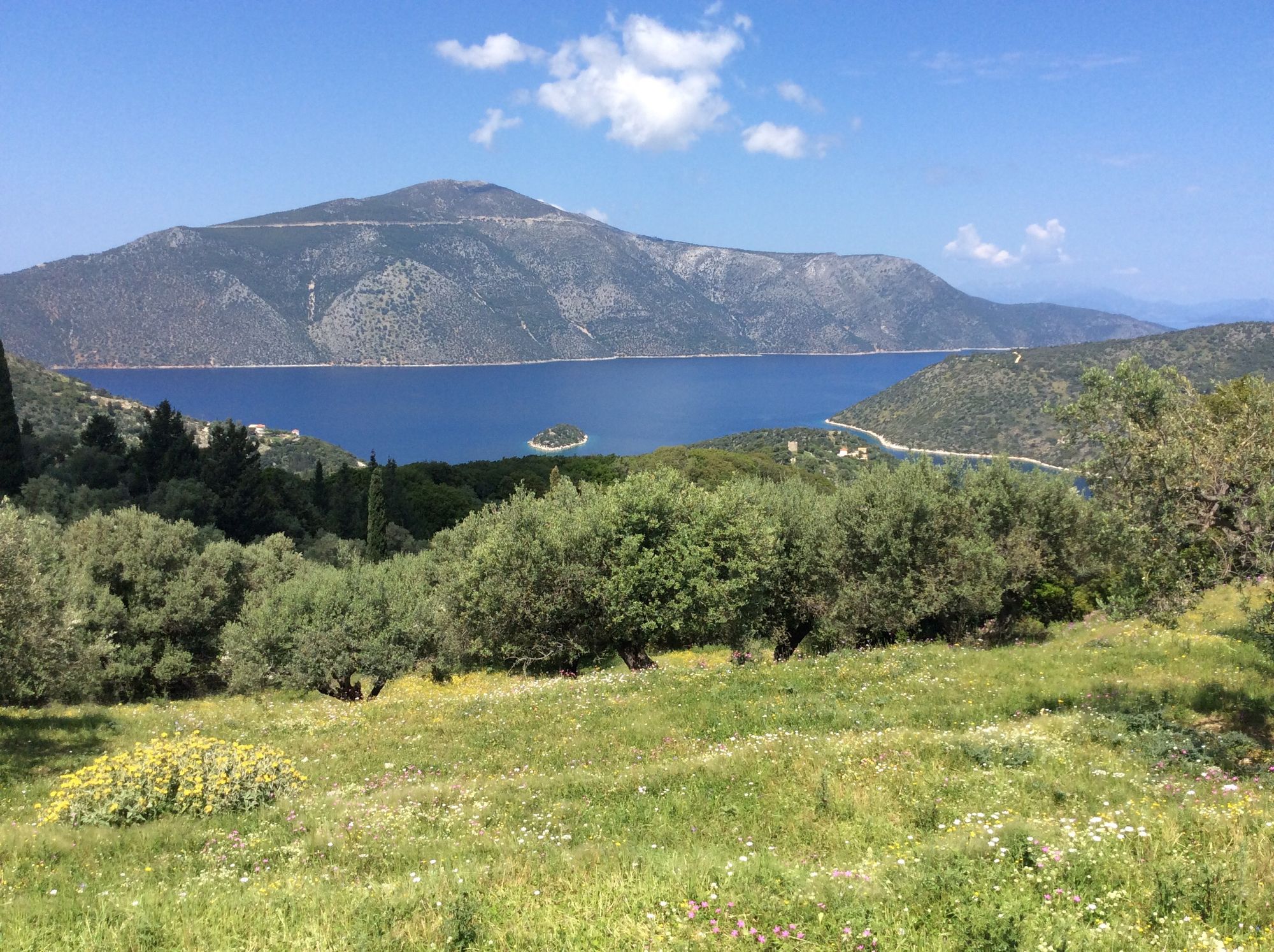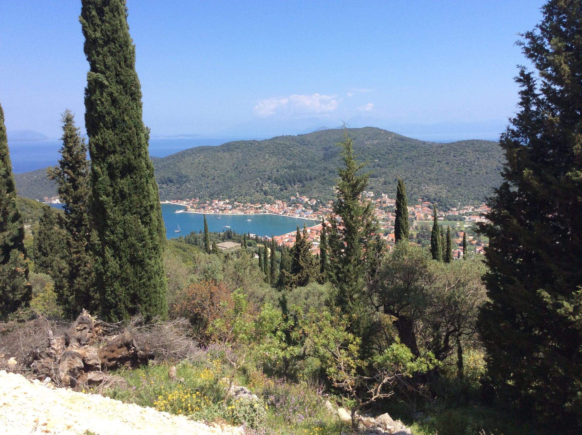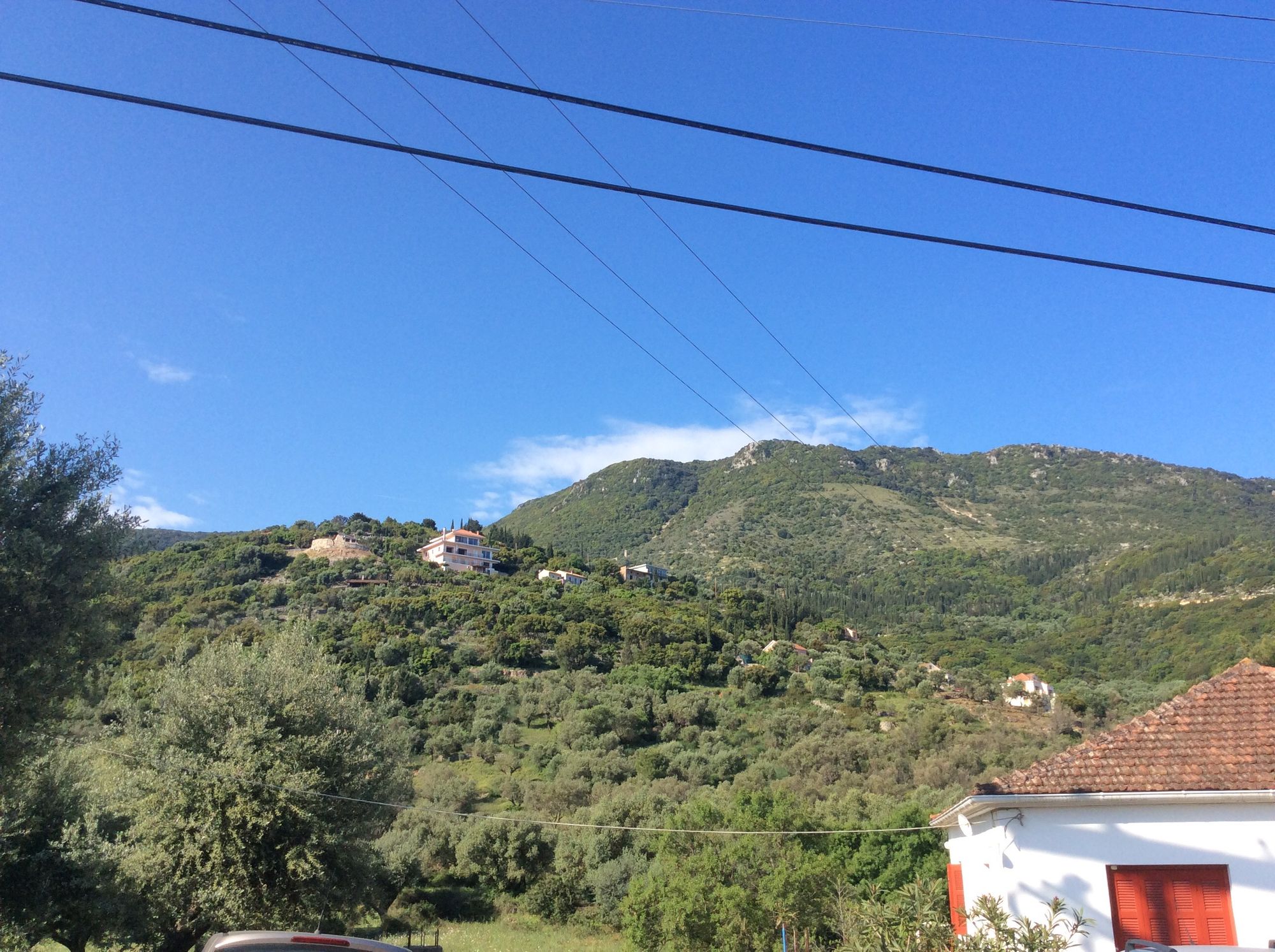 Voilà, en observant attentivement, abstraction faite des câbles et constructions récentes, vous distinguerez, en haut à gauche, les ruines du palais d'où Pénélope, ignorant encore les détours de Charybde en Sylla et autres avanies de son époux, guettait le retour du guerrier vainqueur en tissant et retissant sa future tunique... au côté du palais, une construction plus récente d'un zélote culoté