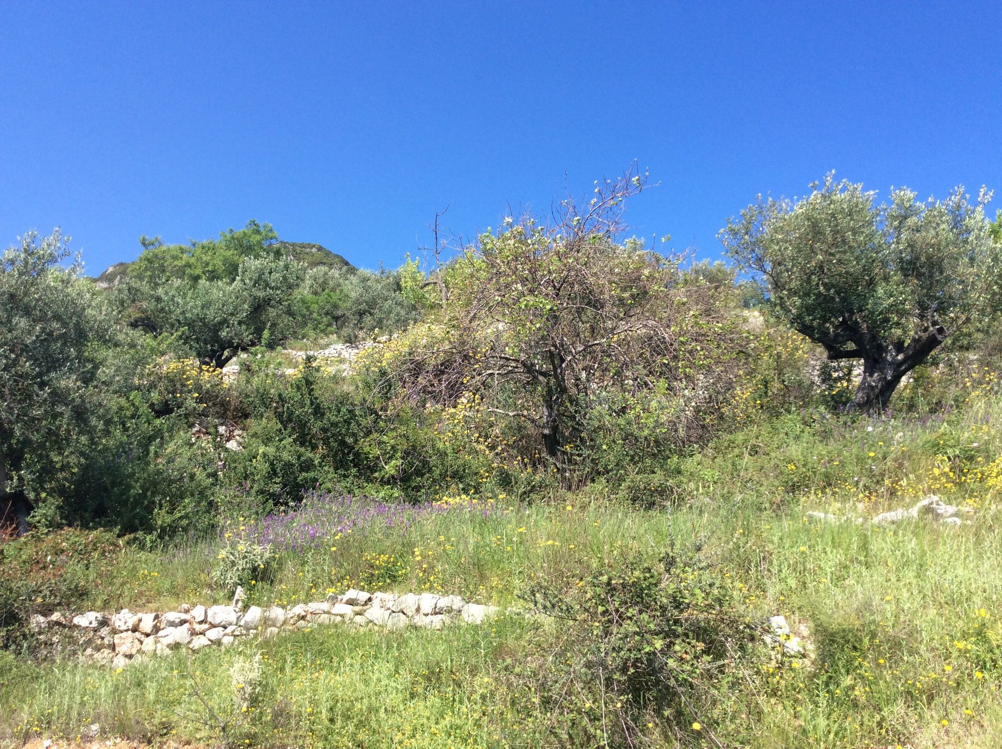le chemin de Périchoron, si vous vous souvenez, grimpe maintenant plus sévèrement à travers les restanques.